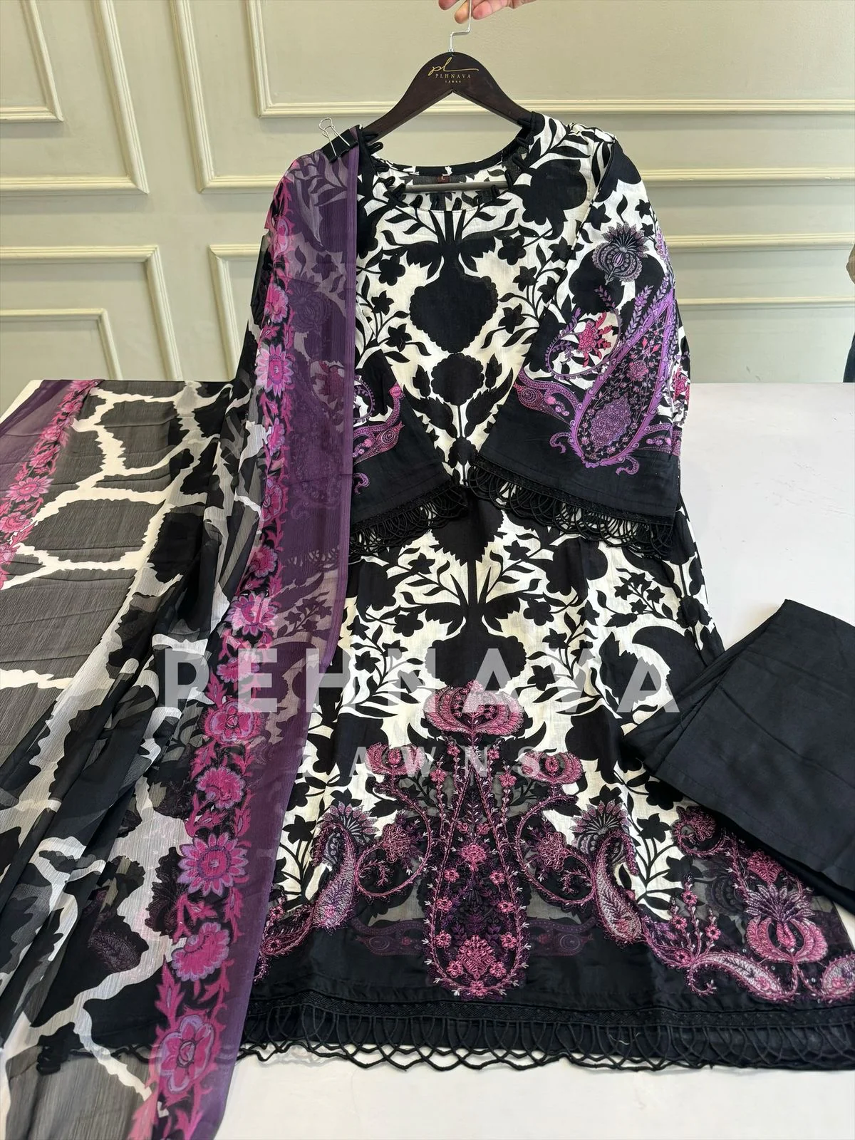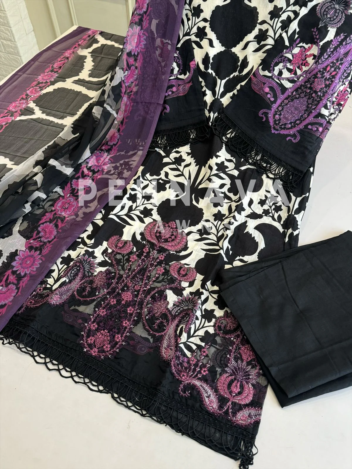 Be the first to review “Embroidered Lawn Suit with Printed Dupatta-Chiffon/Cotton-Black” Cancel reply
