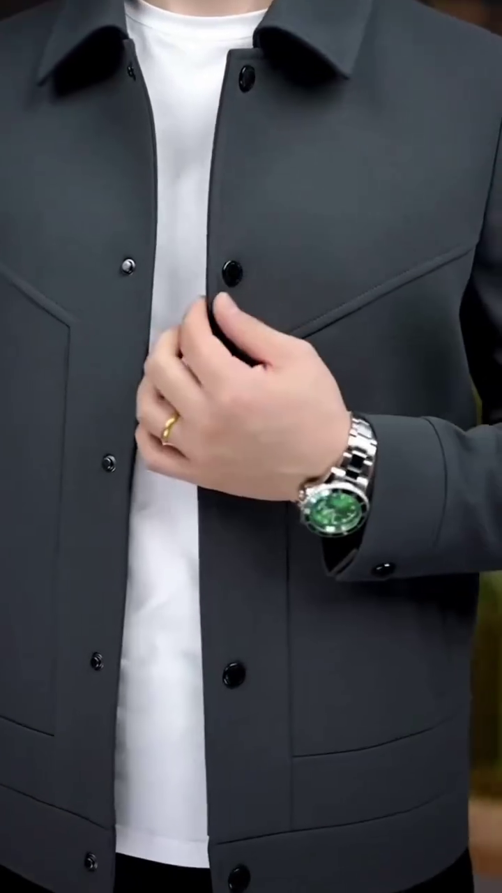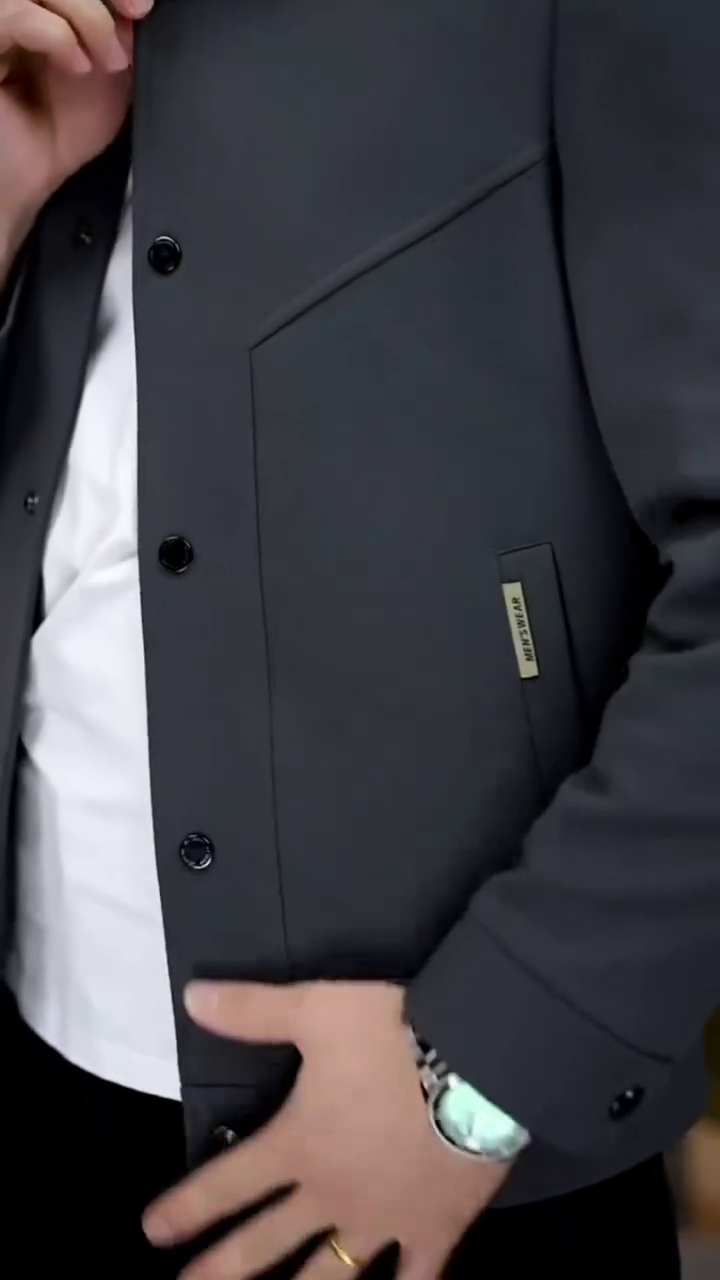 • Design & Fit: A contemporary, tailored silhouette with a clean point collar and a straight hem. The jacket’s defining characteristic is the subtle, geometric yoke paneling across the chest, which adds structure and visual interest without overwhelming the minimalist design.