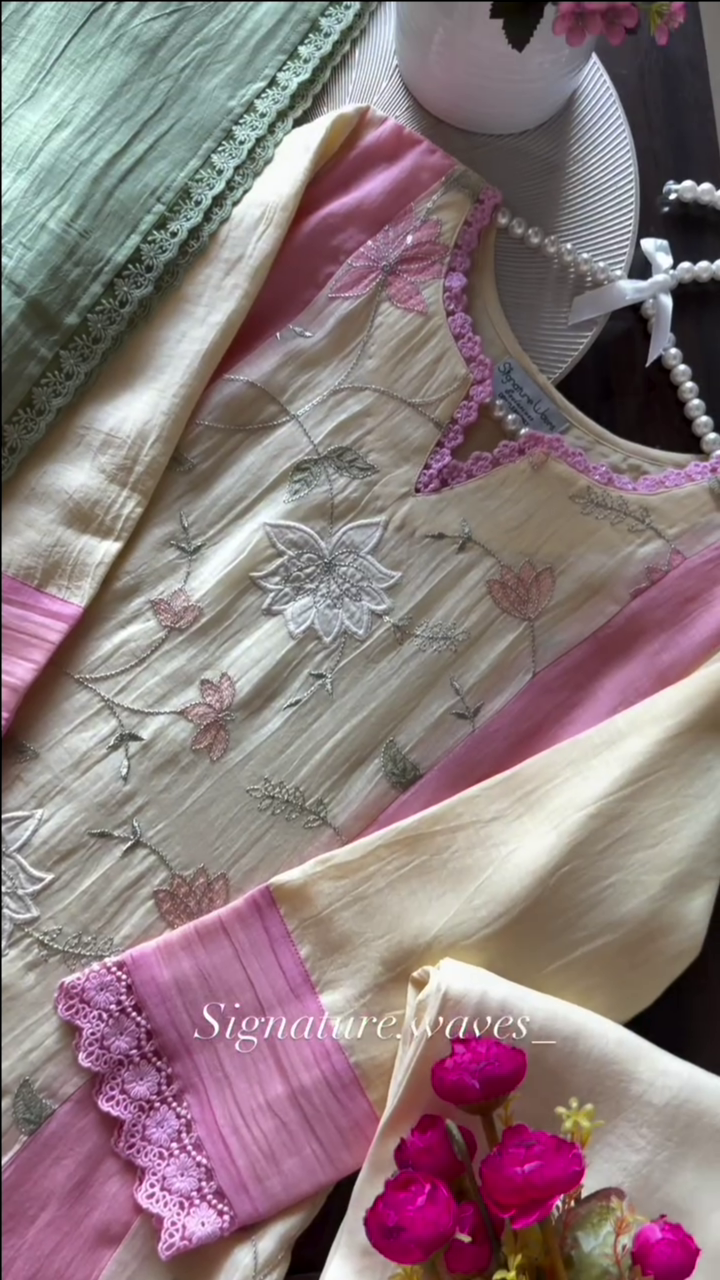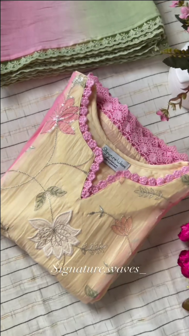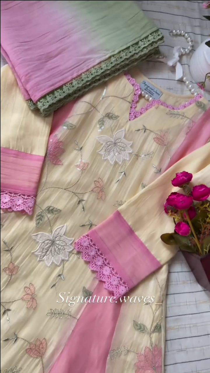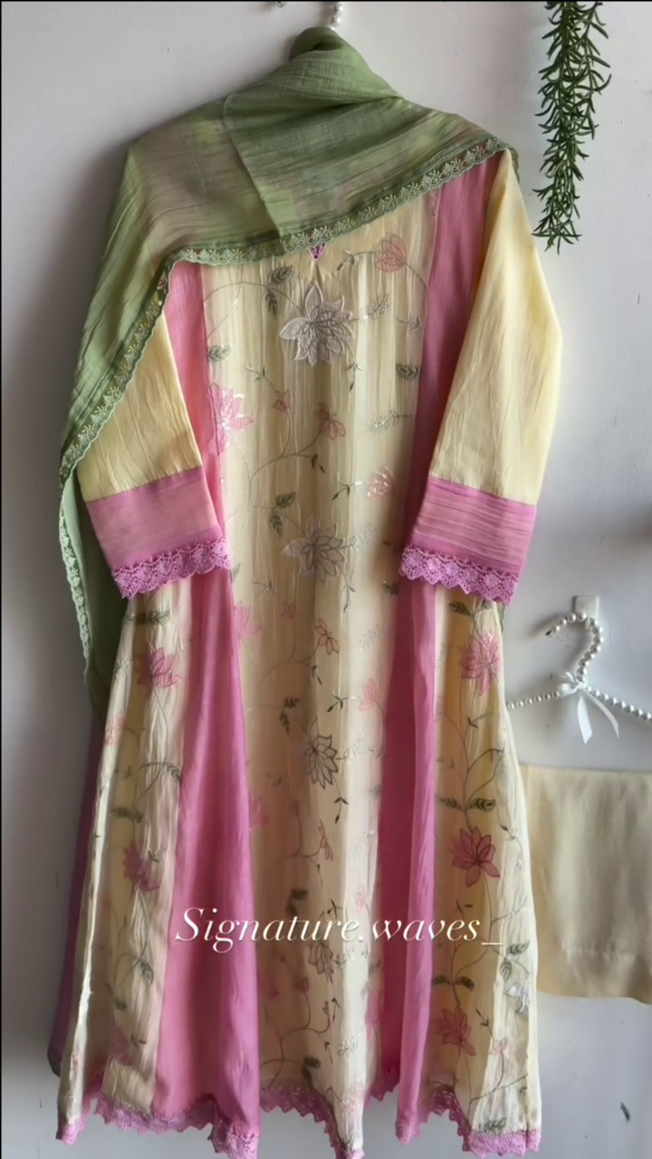 Be the first to review “Yellow and Pink Floral Embroidered Kurta Set With a Dupatta”
